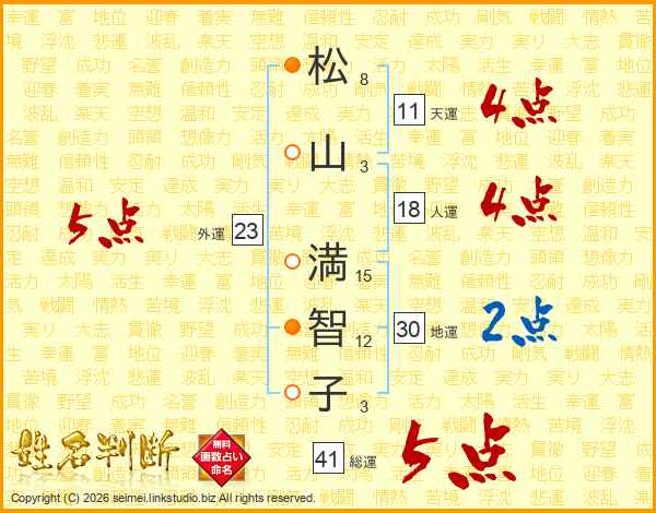 松山満智子さんの総運は41画の5点!