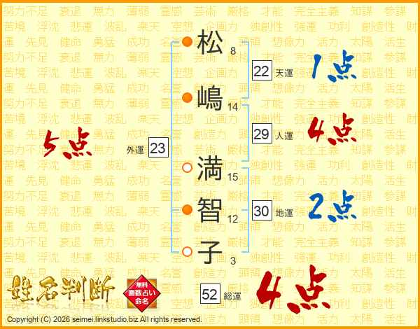 松嶋満智子さんの総運は52画の4点!