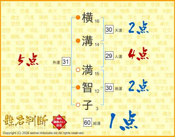 横溝満智子さんの外運は31画の5点!