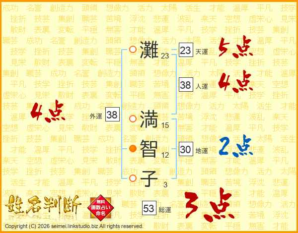 灘(23画) 満(15画)智(12画)子(3画)