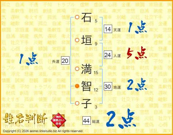 石垣満智子さんの総運は44画の2点!
