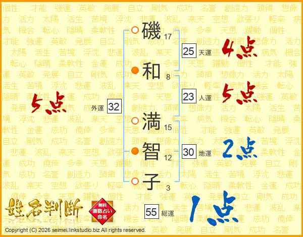 磯和満智子さんの外運は32画の5点!