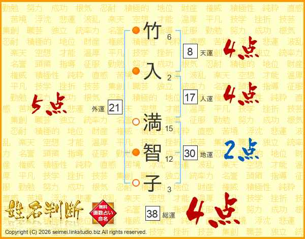 竹入満智子さんの外運は21画の5点!