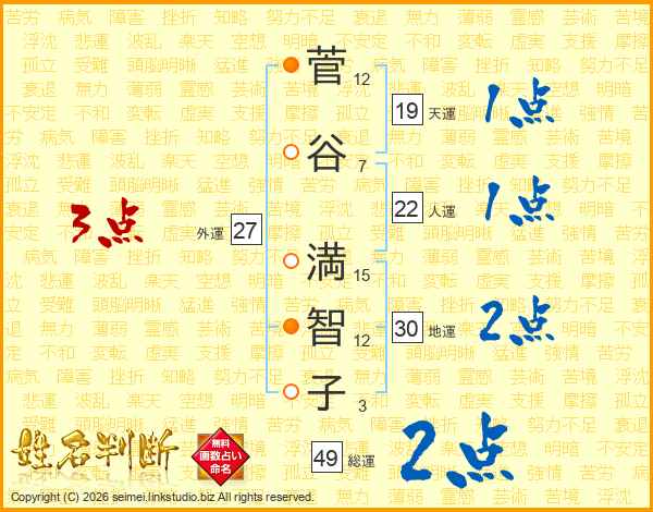 菅谷満智子さんの地運は30画の2点!