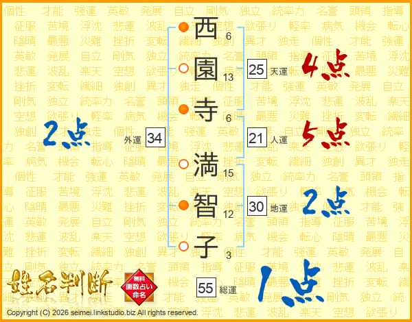 西園寺満智子さんの外運は34画の2点!