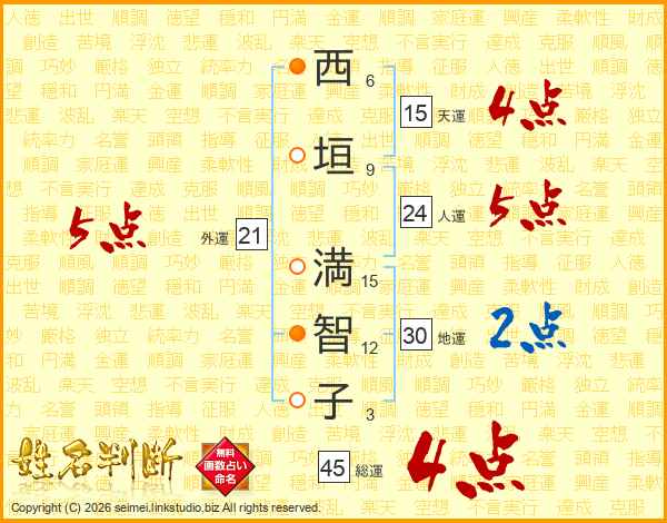 西垣満智子さんの総運は45画の4点!