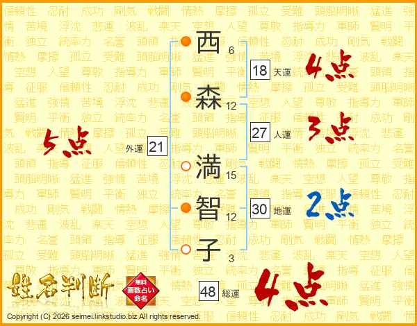 西森満智子さんの総運は48画の4点!