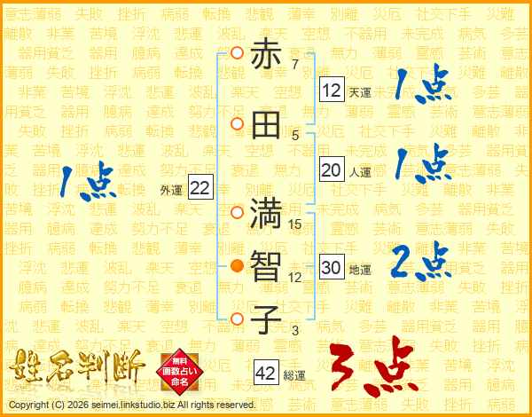 赤田満智子さんの地運は30画の2点!