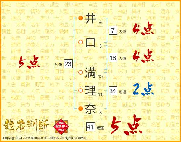 井(4画)口(3画) 満(15画)理(11画)奈(8画)