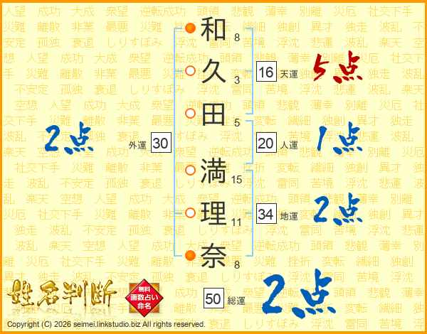 和久田満理奈さんの総運は50画の2点!