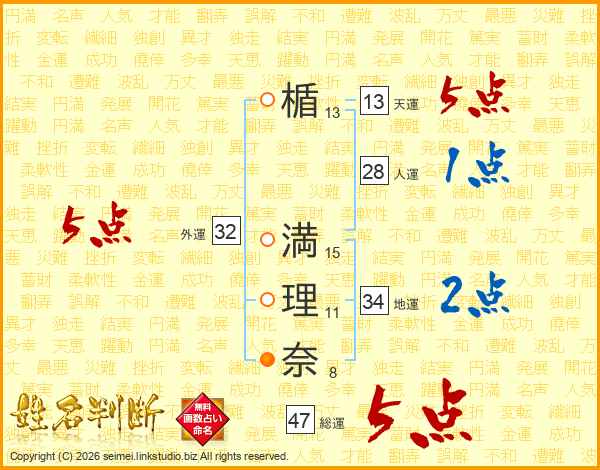 楯満理奈さんの外運は32画の5点!