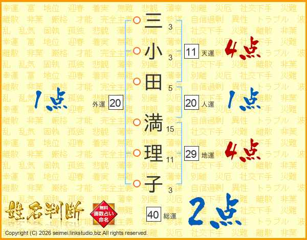 三小田満理子さんの総運は40画の2点!