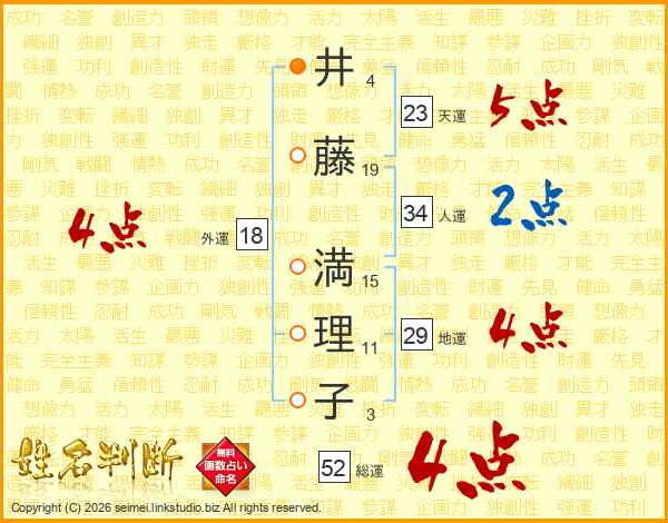 井(4画)藤(19画) 満(15画)理(11画)子(3画)