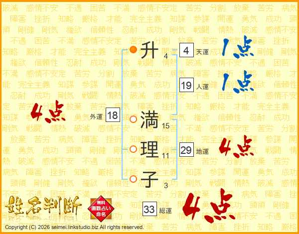 升(4画) 満(15画)理(11画)子(3画)