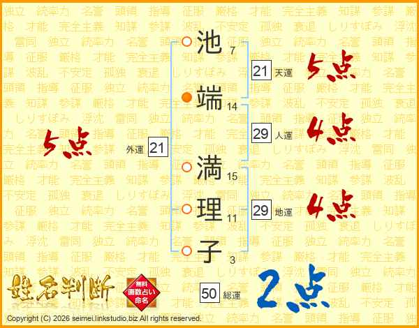池端満理子さんの天運は21画の5点!