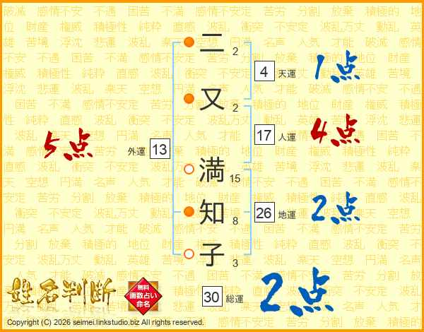 二又満知子さんの地運は26画の2点!