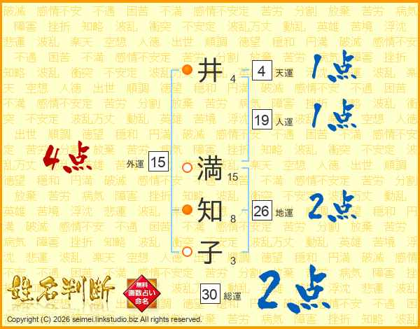 井(4画) 満(15画)知(8画)子(3画)