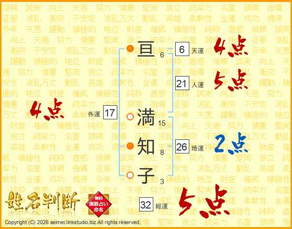 亘満知子さんの総運は32画の5点!