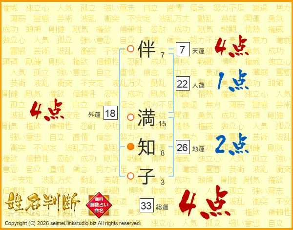 伴満知子さんの外運は18画の4点!
