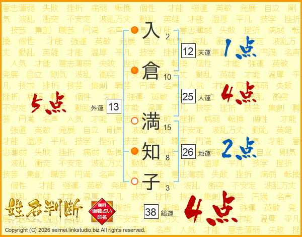 入倉満知子さんの総運は38画の4点!