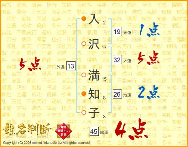 入沢満知子さんの総運は45画の4点!