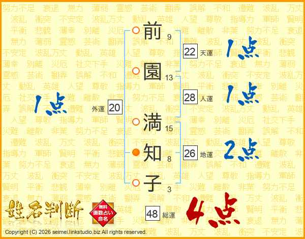 前園満知子さんの総運は48画の4点!