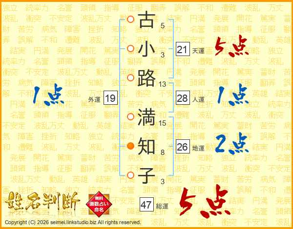 古小路満知子さんの総運は47画の5点!