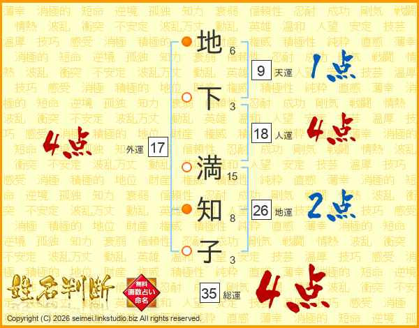 地下満知子さんの地運は26画の2点!