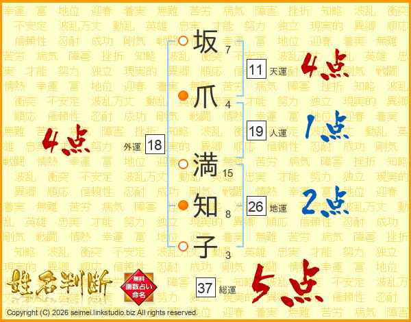 坂爪満知子さんの総運は37画の5点!