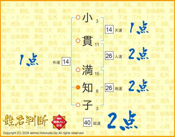 小貫満知子さんの外運は14画の1点!