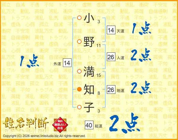 小野満知子さんの地運は26画の2点!