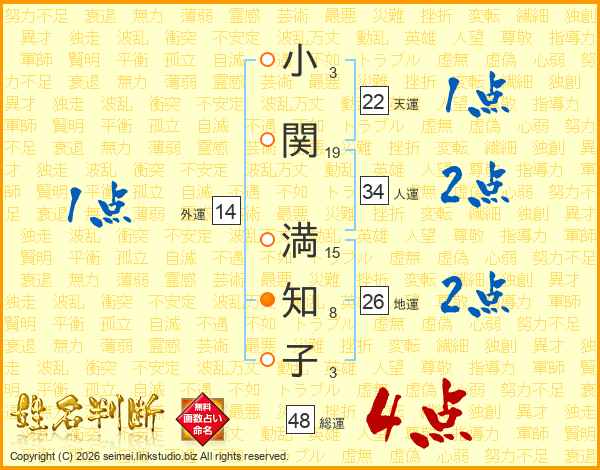 小関満知子さんの総運は48画の4点!