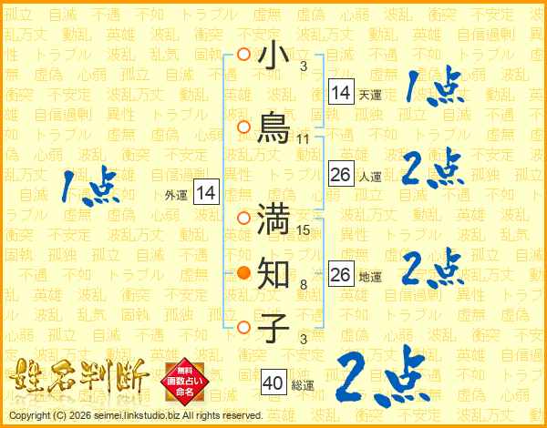 小鳥満知子さんの人運は26画の2点!