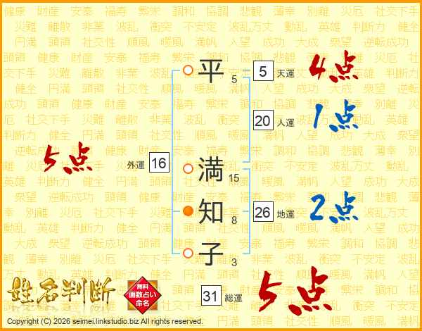 平満知子さんの地運は26画の2点!