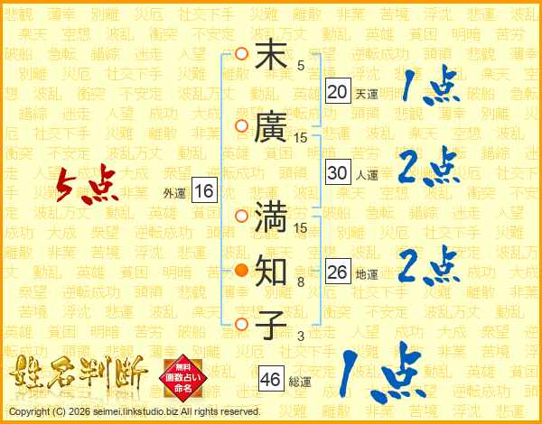 末廣満知子さんの地運は26画の2点!