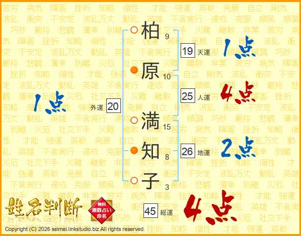 柏原満知子さんの総運は45画の4点!