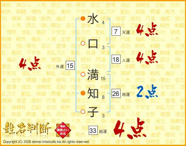 水口満知子さんの総運は33画の4点!