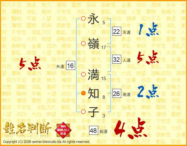 永嶺満知子さんの総運は48画の4点!