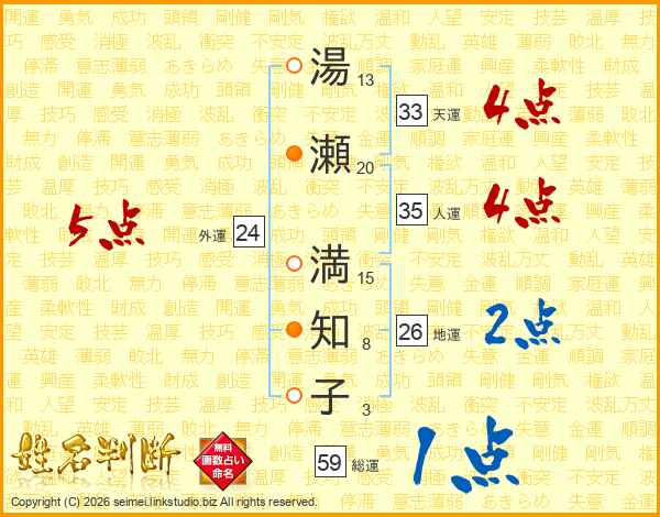 湯瀬満知子さんの総運は59画の1点!