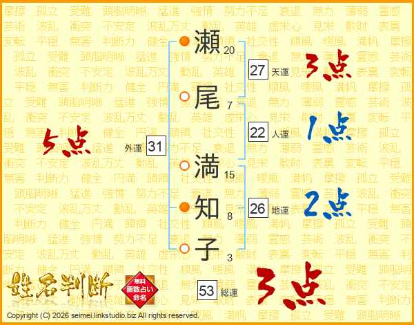 瀬尾満知子さんの外運は31画の5点!