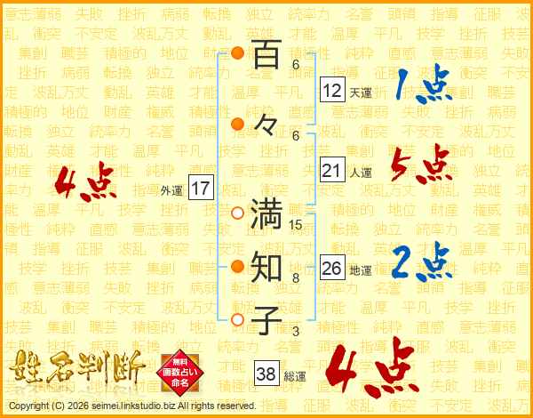 百々満知子さんの総運は38画の4点!
