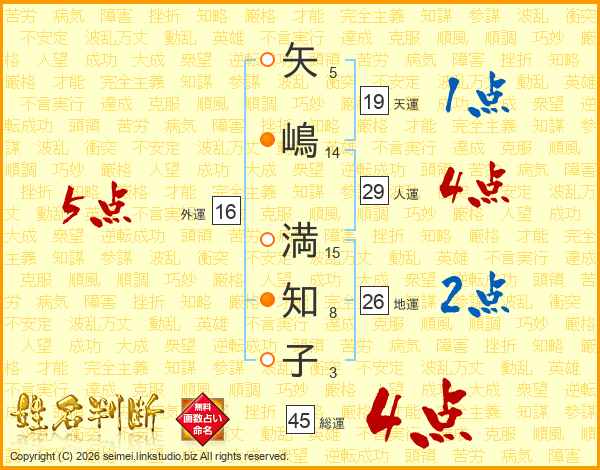 矢嶋満知子さんの総運は45画の4点!