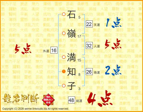 石嶺満知子さんの総運は48画の4点!
