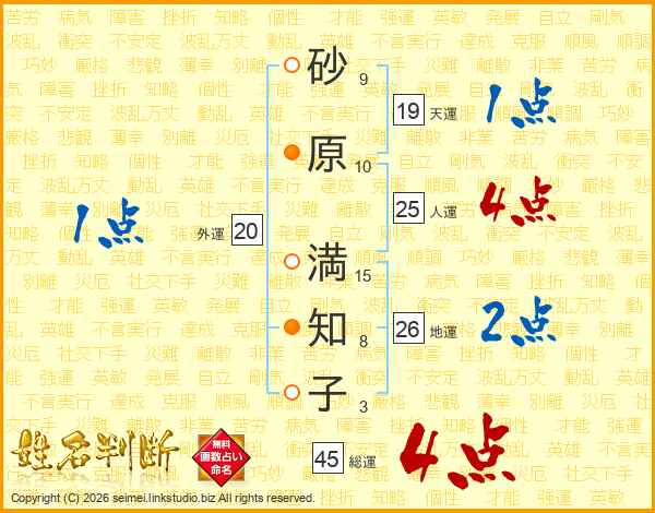 砂原満知子さんの総運は45画の4点!