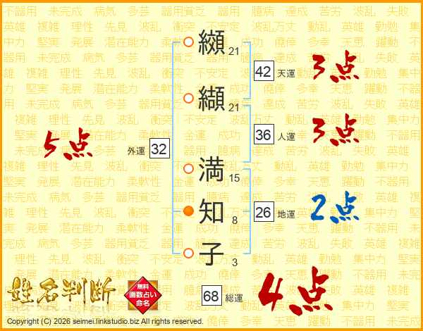 纐纈満知子さんの総運は68画の4点!