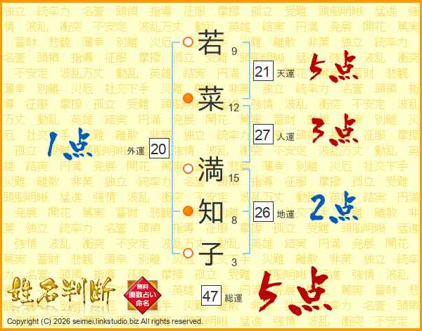 若菜満知子さんの総運は47画の5点!