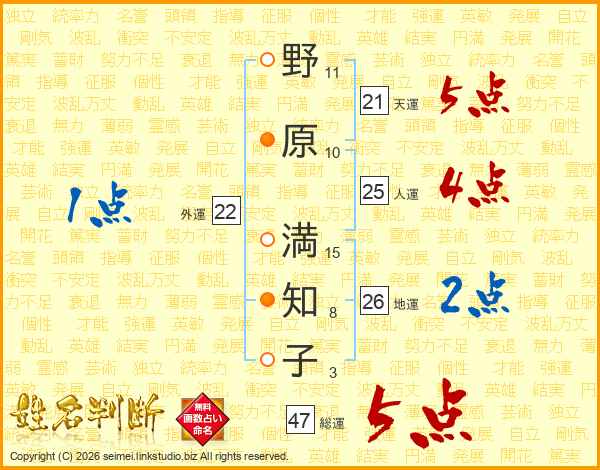 野原満知子さんの総運は47画の5点!