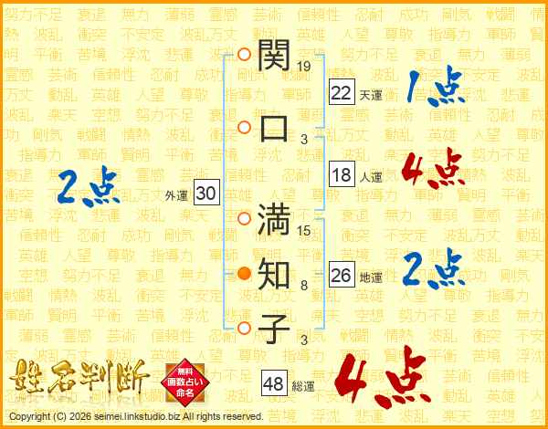 関口満知子さんの総運は48画の4点!