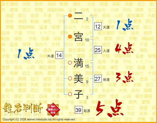 二宮満美子さんの外運は14画の1点!