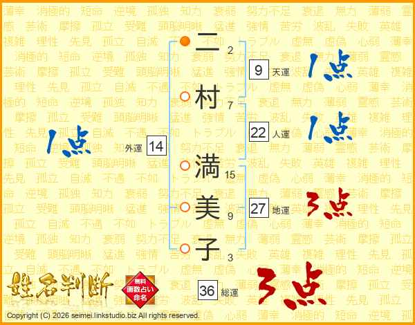 二村満美子さんの外運は14画の1点!